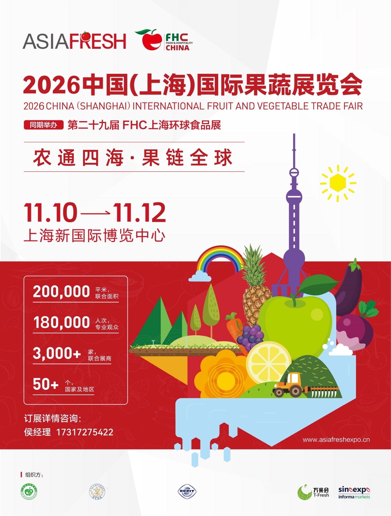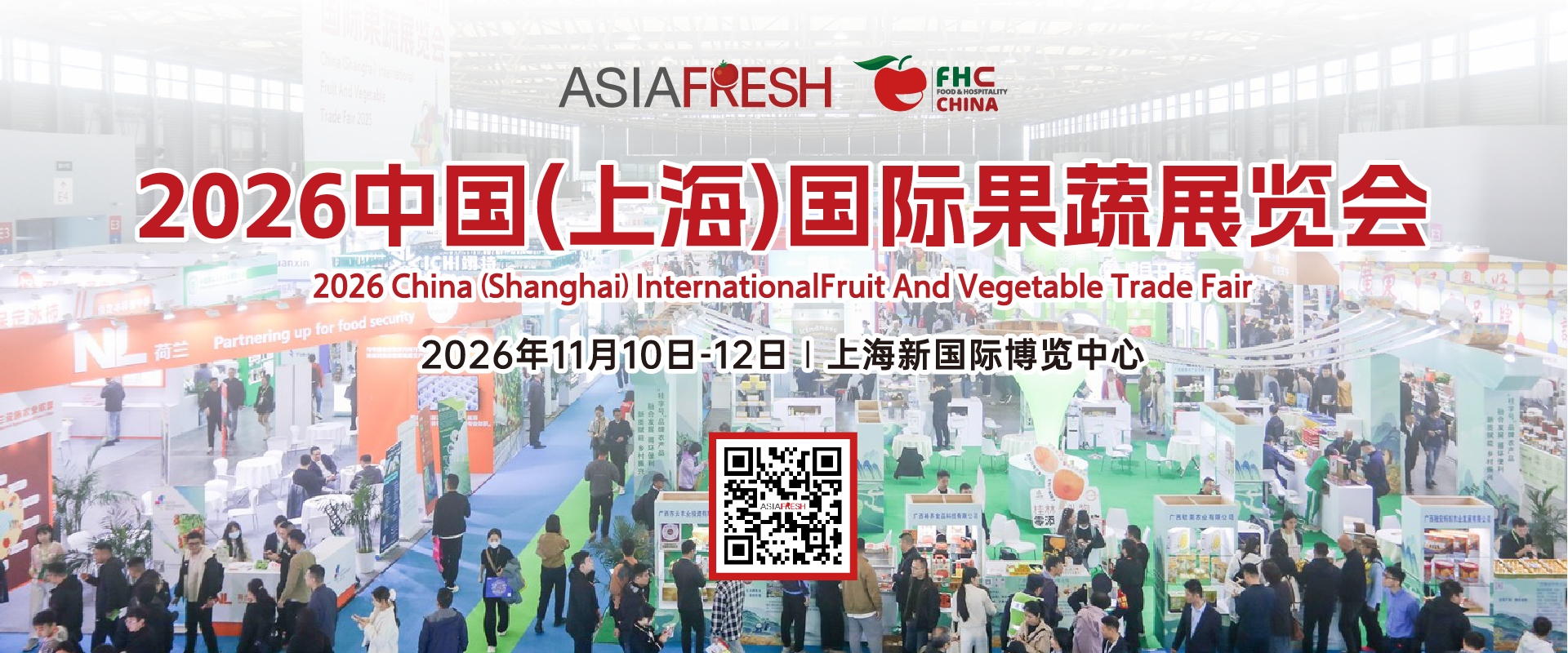 2026 中国(上海)国际果蔬展览会将于2026年11月10-12日在上海新国际博览中心隆重举办,同期同地将举办食品餐饮业内大型的贸易展会之一 - FHC上海环球食品展。